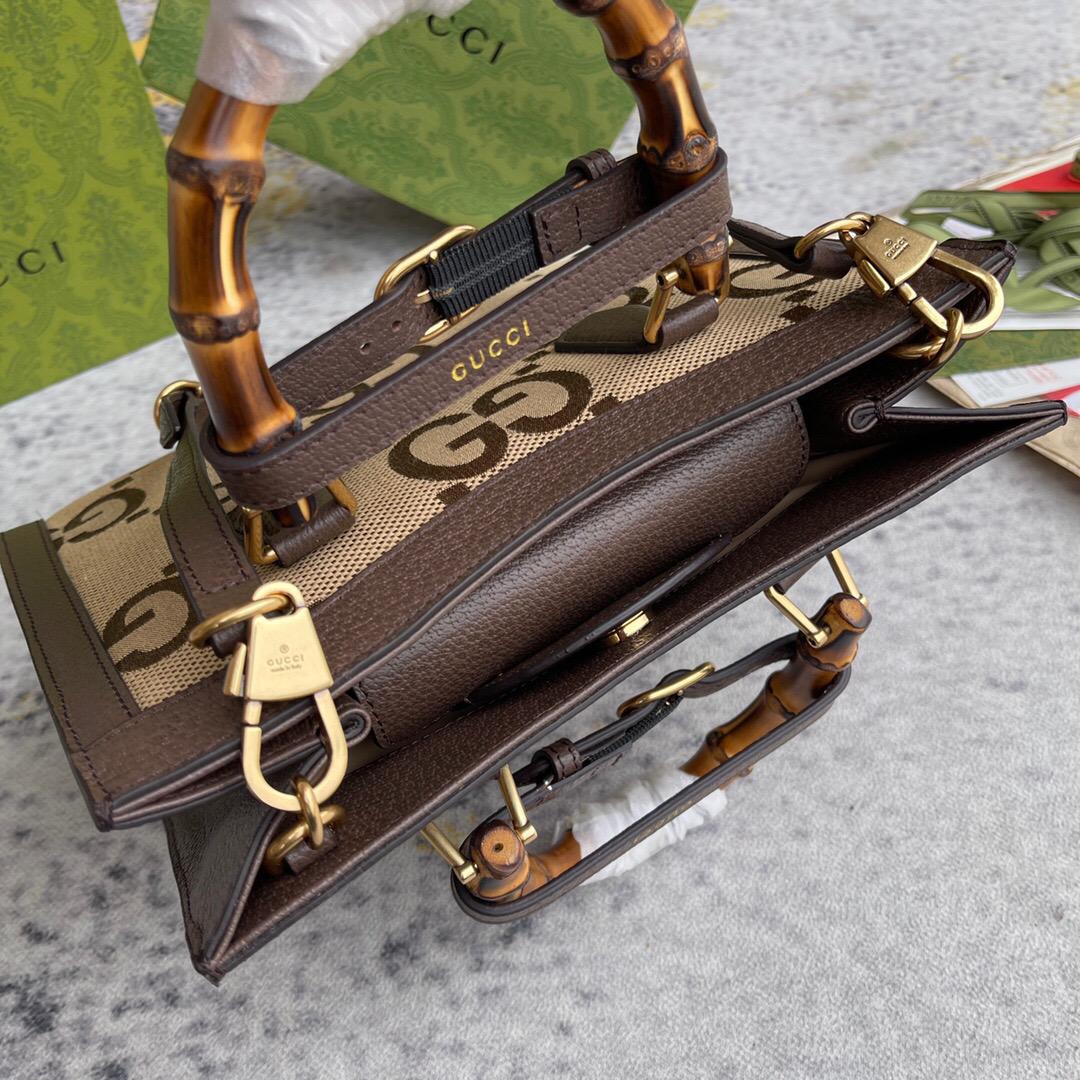 Double G Camel and ebony jumbo GG canvas Shiny antique gold-toned hardware This item comes with 2 decorative belt handle shapers as shown in the image Lining: cotton linen Interior open pocket Bamboo handles with 2.6" drop Detachable and adjustable shoulder strap with 21" drop