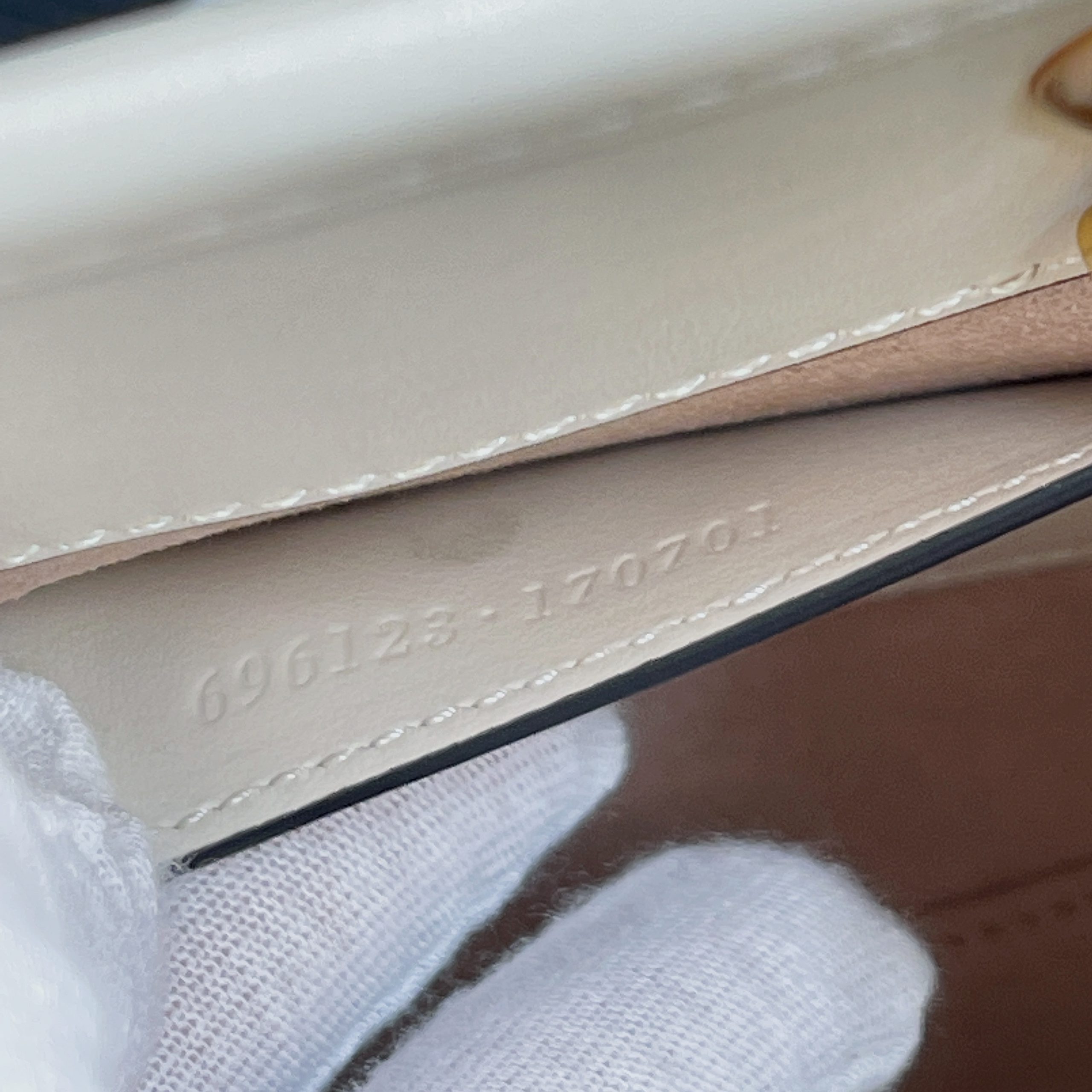 White matelassé chevron Antique gold-toned hardware Double G Double handles with 4.3" drop