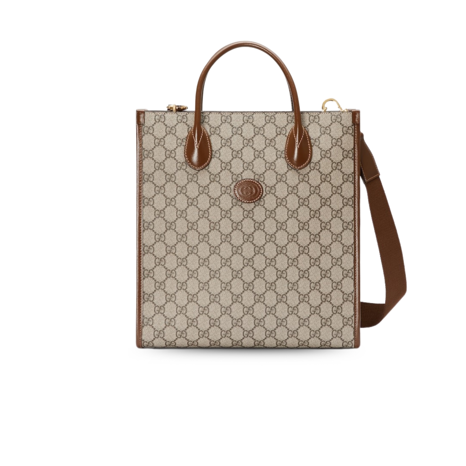 The Interlocking G has remained one of the most symbolic codes of the House since its introduction. The distinguishing emblem appears as a leather detail atop this tote bag. Completing the design's logo feel, the style is crafted from beige and ebony monogram canvas.