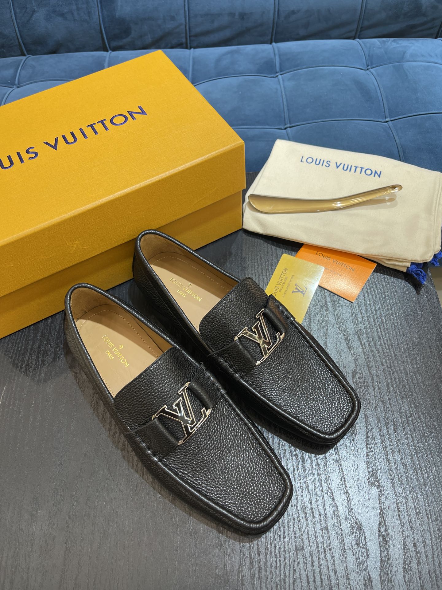 Monogram grained Hand-stitched (1 hour per pair) Blake construction Outsole LV Initials accessory.