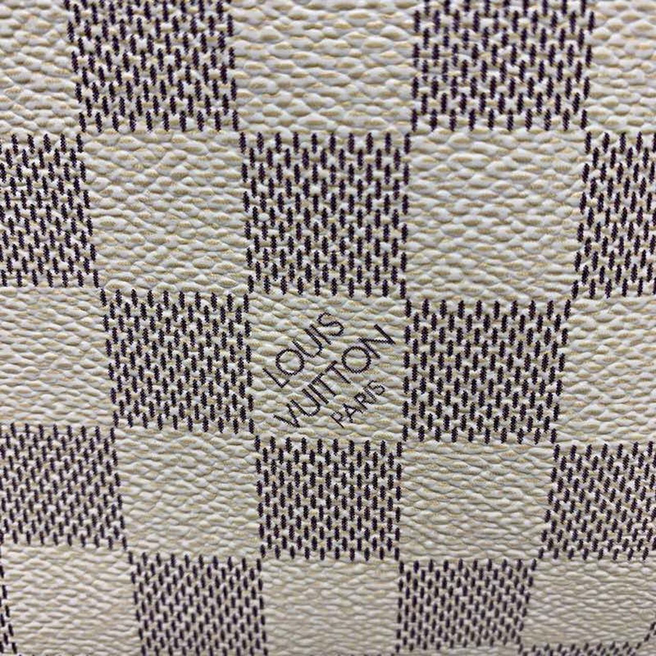 The Neverfull GM tote unites timeless design with heritage details. Crafted from fresh Damier Azur canvas with natural trim, it is ultra-roomy yet never bulky, with side laces that cinch for a sleek allure or loosen for a more casual look. Slim, comfortable handles slip easily over the shoulder or arm. Lined in colorful textile, it features a removable pouch which can serve as a clutch or an extra pocket.