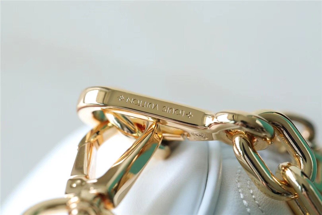 Snow White Nylon strap Jacquard with Nano Monogram lining Gold-color hardware 2 top handles for hand carry 1 adjustable and removable nylon strap for shoulder or crossbody carry 1 removable chain Inside flat pocket Strap: Removable, adjustable Chain: Removable Chain Drop: 19.5 cm Handle: Double