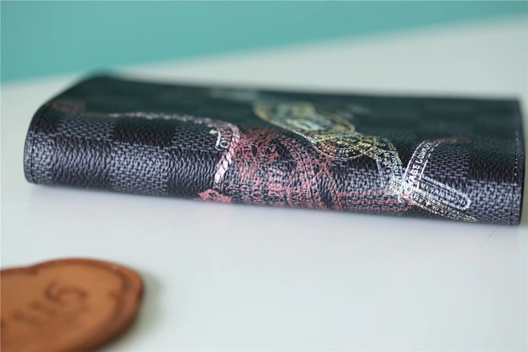Fashioned from Damier Graphite canvas, with a print of exotic beasts charging, the Passport Cover plays with the codes of travel. The animals are made of pastel-colored, passport-style stamps. Beyond essential for the modern traveller, this sleek passport cover has four card slots and its open pockets give easy access to the passport.