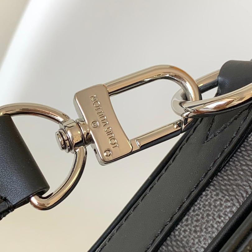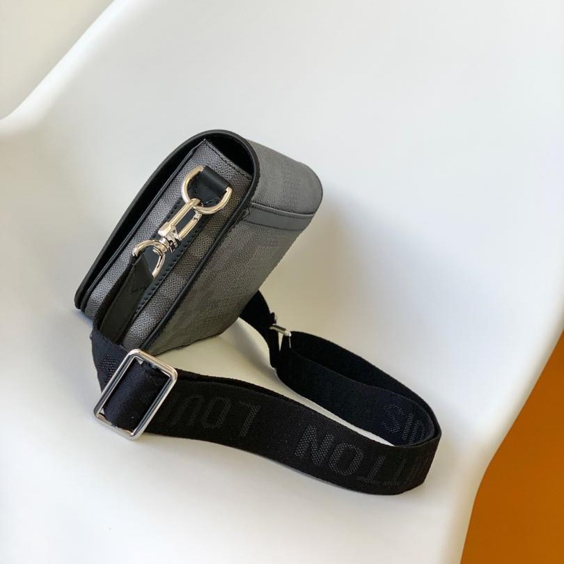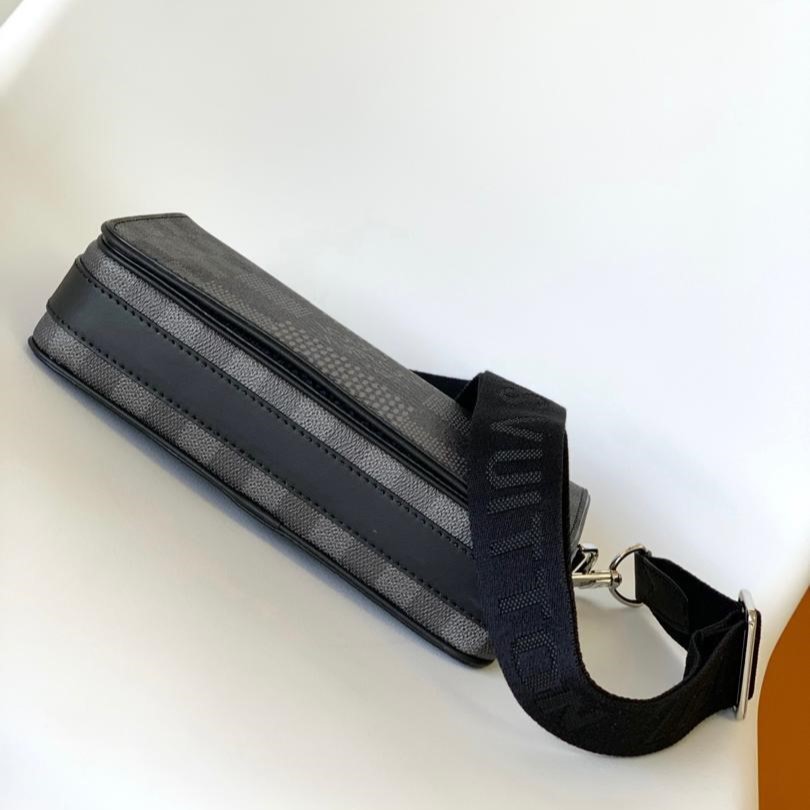 Gray Damier Graphite 3D coated canvas Textile lining Silver-color hardware Signature strap Front flap with magnetic closure Large main compartment Inside flat pocket Outside flat pocket D-ring on the strap Strap: Removable, adjustable