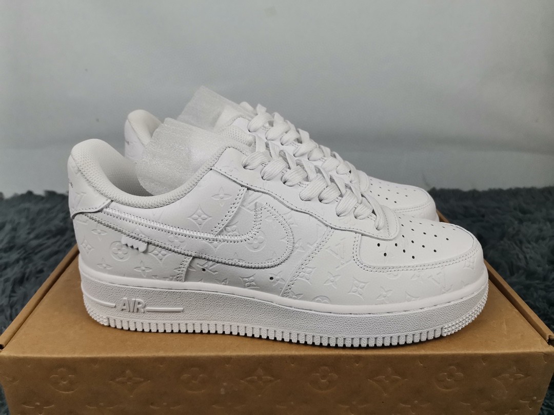 Louis Vuitton x Nike Air Force 1 “White” White upper with LV Monogram details. Louis Vuitton branding on heel and tongue.