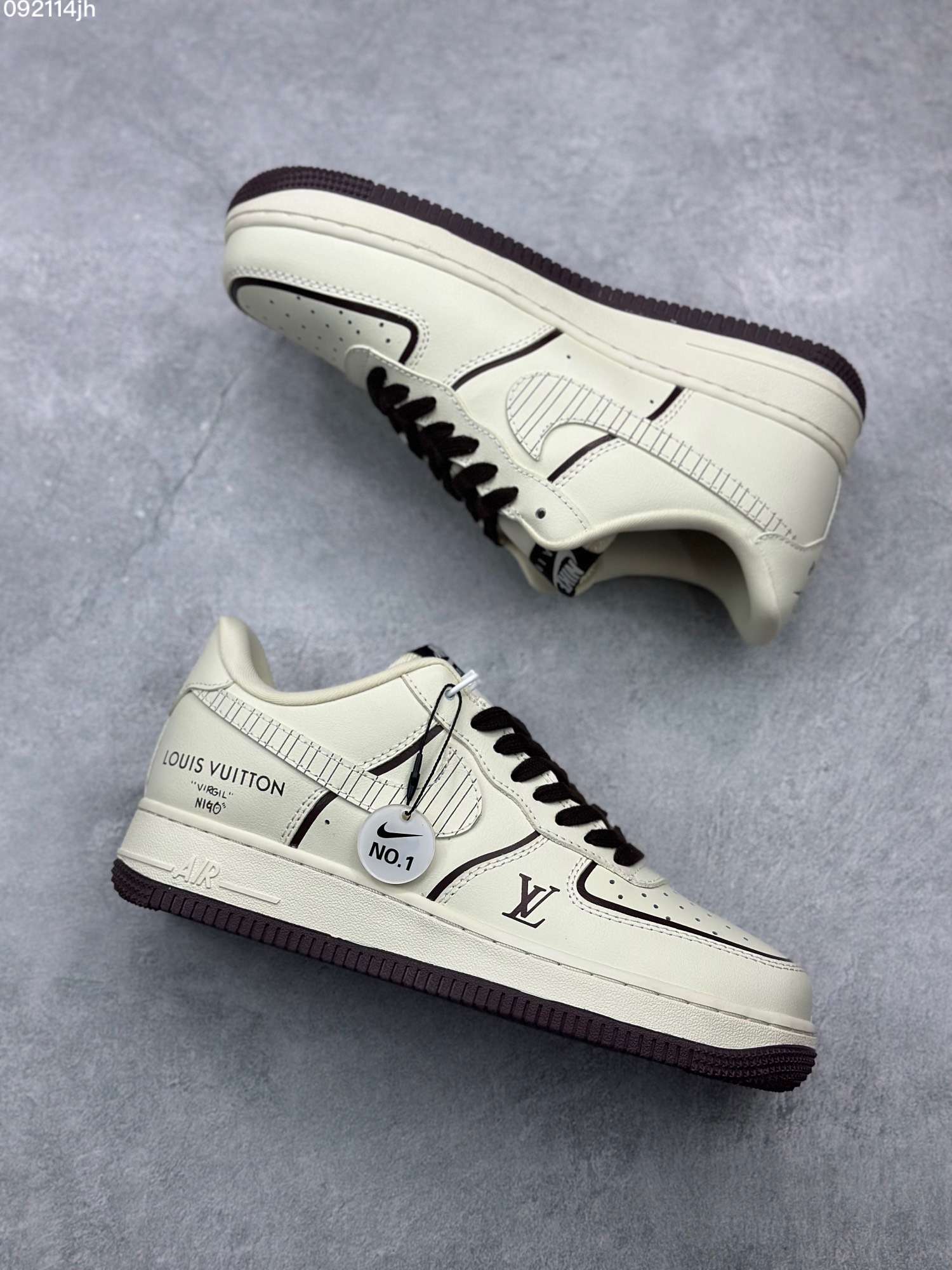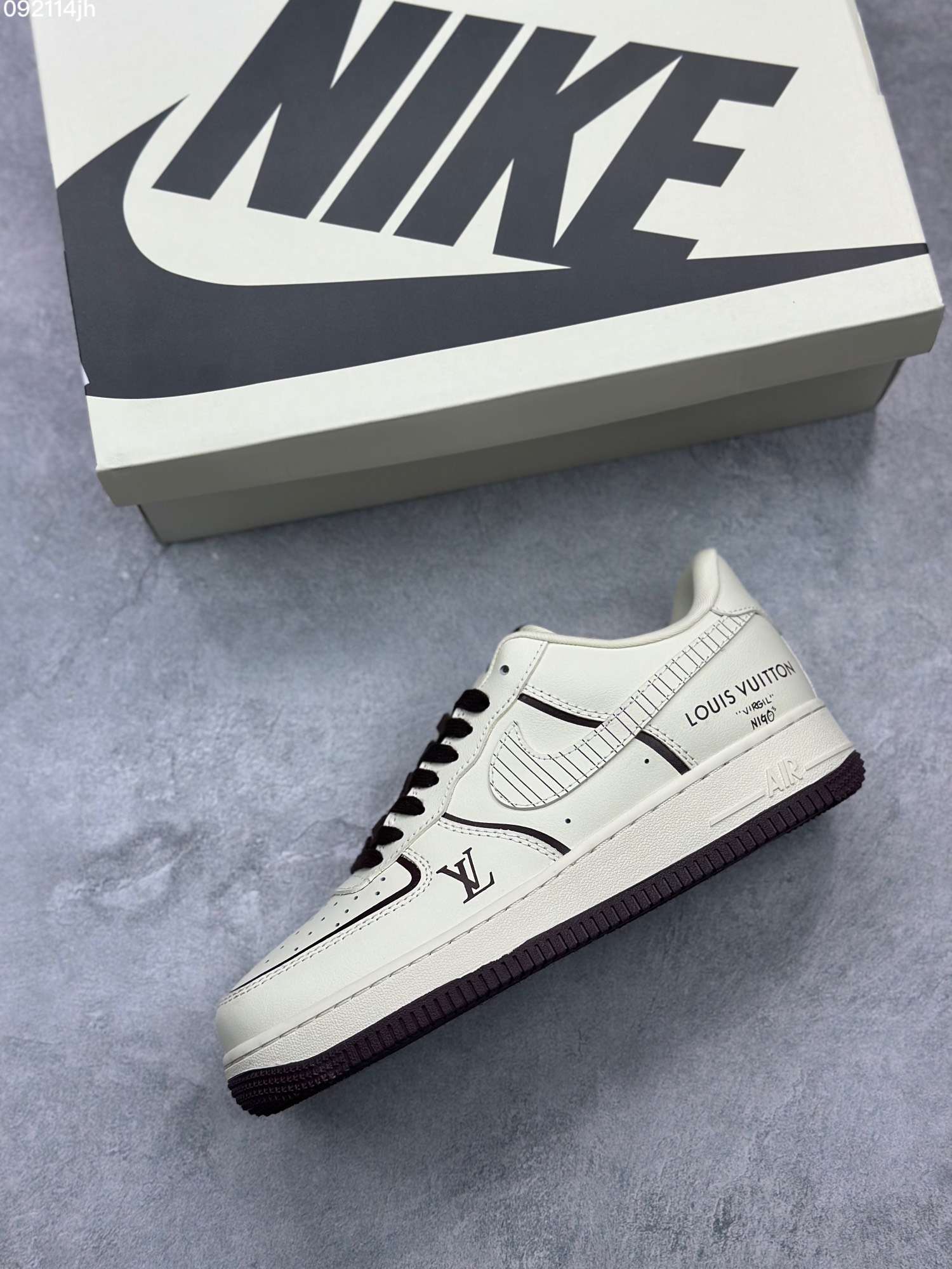 Nike Air Force 1 Low Louis Vuitton Monogram Brown Damier Azur - Celebrating its 40th year, the Nike Air Force 1 was designed in 1982 and is one of the most successful iconic shoes ever created. On the occasion of the Louis Vuitton Men's Spring-Summer 2022 fashion show, Virgil Abloh collaborated with Nike to design 47 pairs of bespoke Air Force 1s, blending classic sneaker codes with Louis Vuitton insignia and materials in homage to hip-hop culture that formed it
