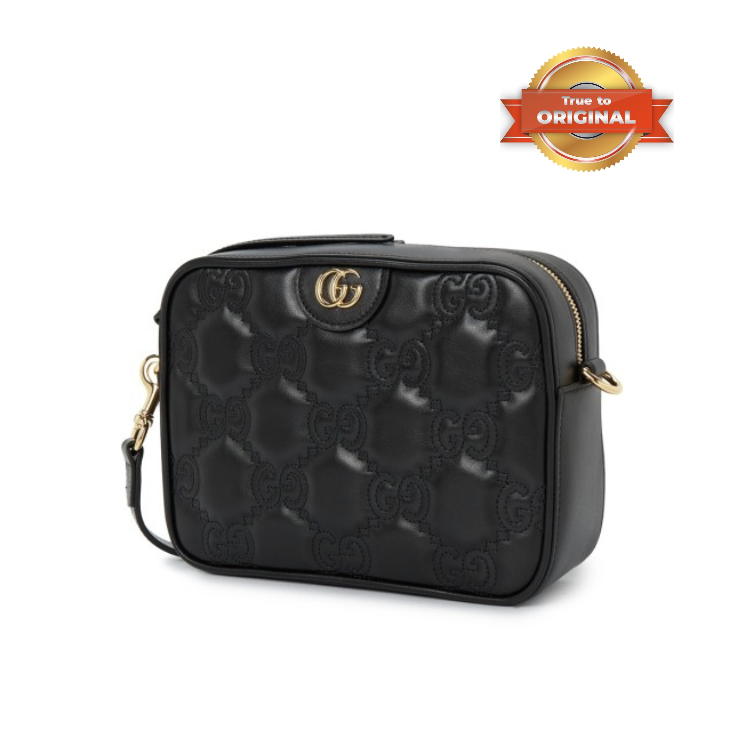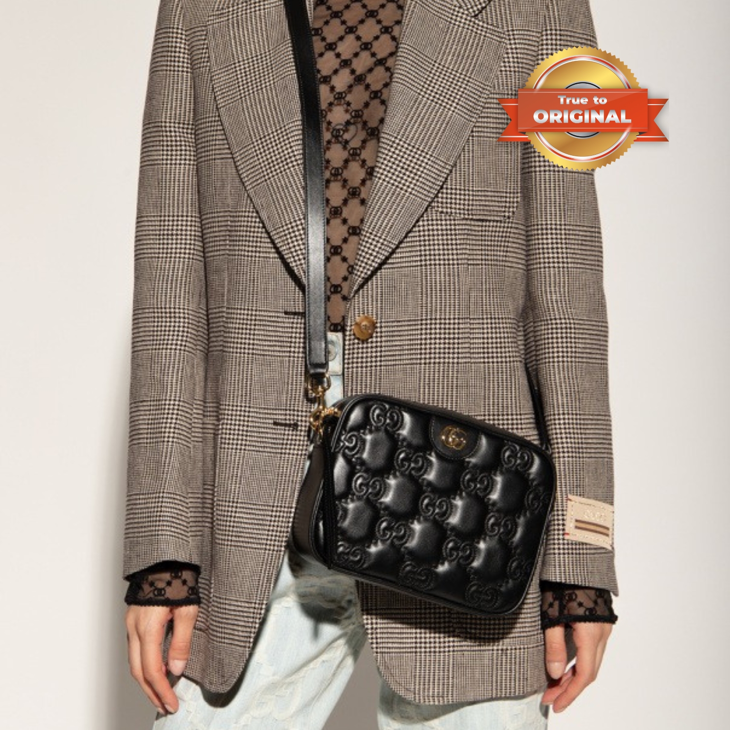 Matelassé continues to come to the fore of the Creative Director's designs in new and unique ways each season. With a super soft finish, the signature material is reimagined once again as a part of Gucci Love Parade with a textured geometric motif. The design presents a contemporary approach to the '90s logo trend that appears throughout the House's latest collections. Here, the material defines a slimline, structured shoulder bag in black. Size: 21.5 x 17 x 7.5 cm / 8.5 x 6.7 x 2.9 inches (Length x height x width) Black Gold-toned hardware Double GIncludes box, dust bag. This product is of the best quality.